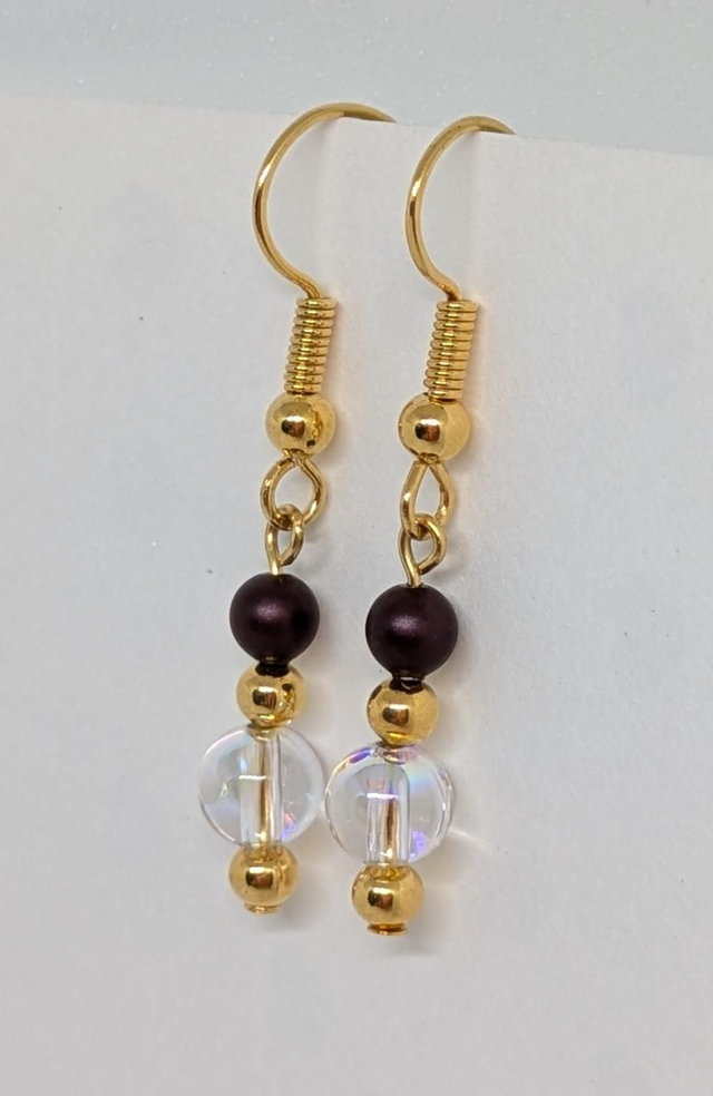 Very Elegant earrings featuring an iridescent Aurora Borealis effect bead paired with a soft, luminous Berry Red Crystal Pearl for a touch of color and refined charm.