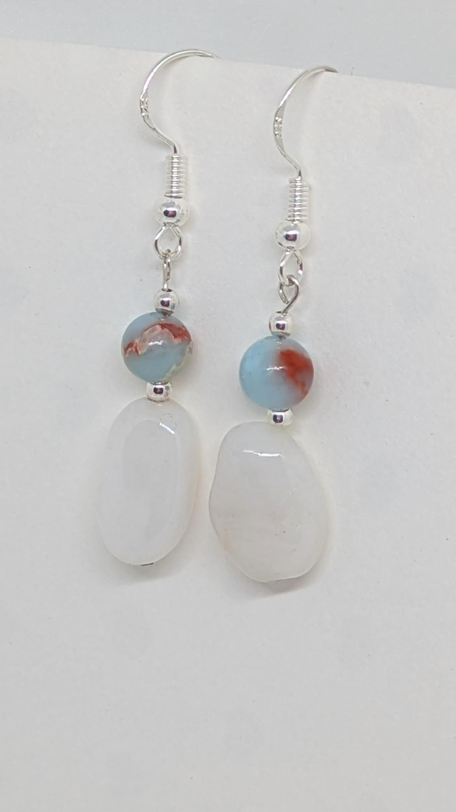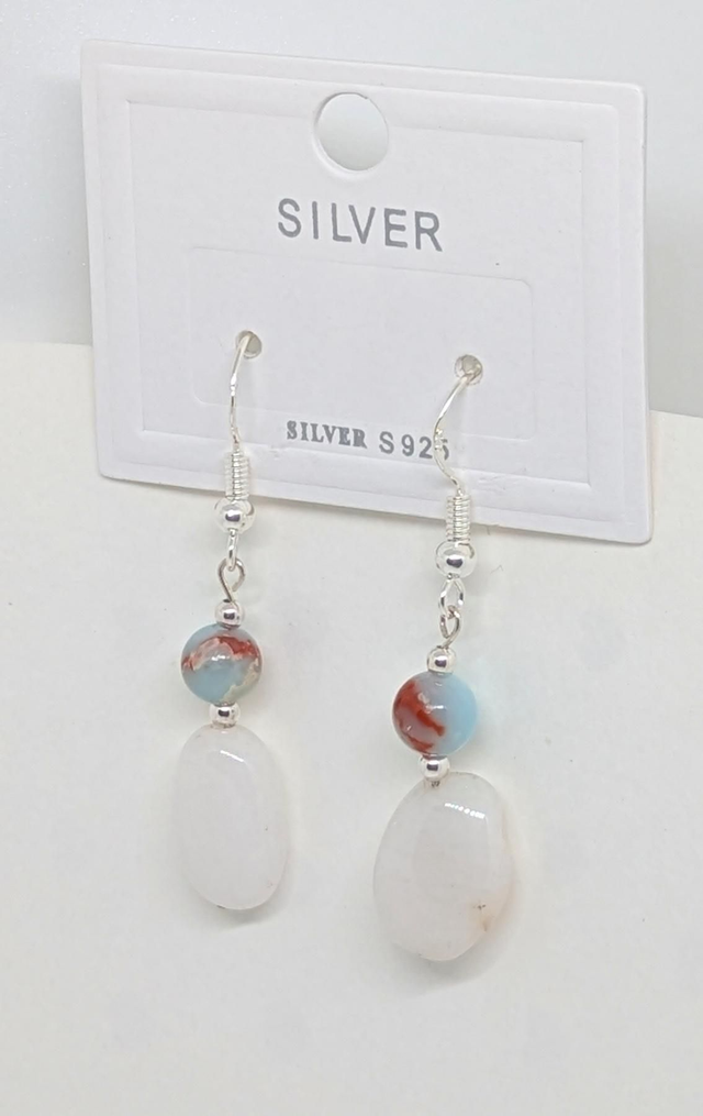 Pretty 925 Sterling Silver, Agate & Snake Skin Jasper Earrings.