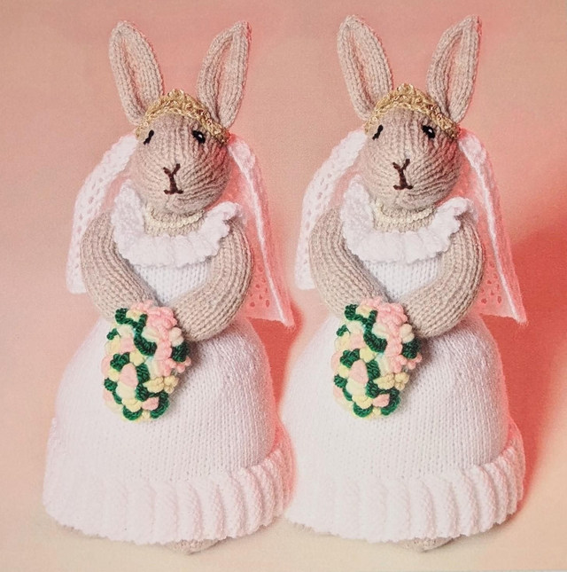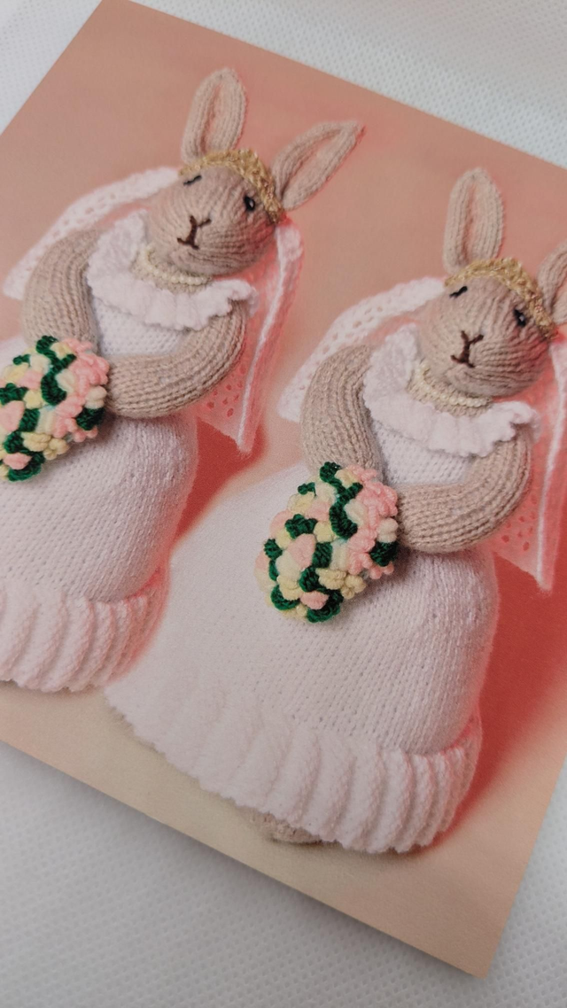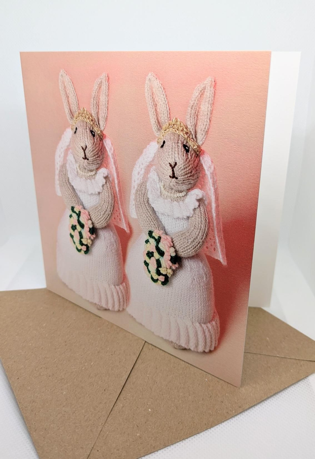 Patricia Anne Range Wedding (Mrs & Mrs) Greeting Card - Knitted Bunnies