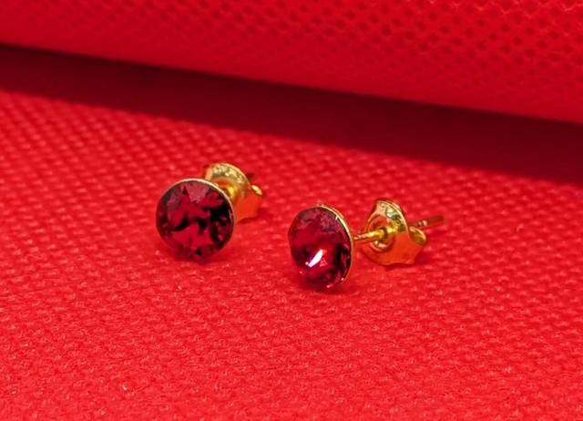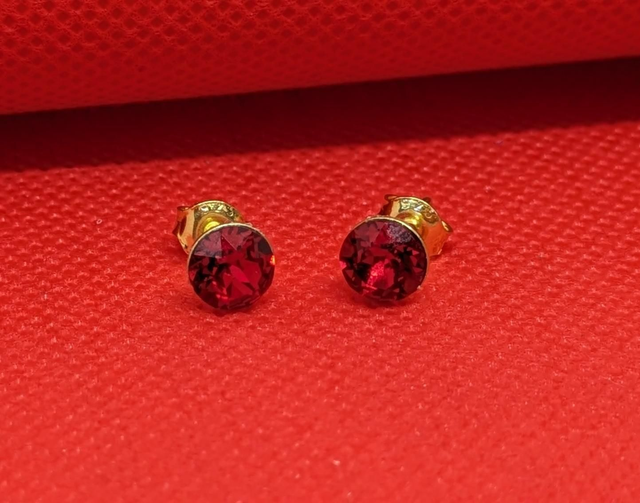 Gorgeous Scarlet Red Serenity Crystal/24k Gold Plated Sterling Silver Stud Earrings.