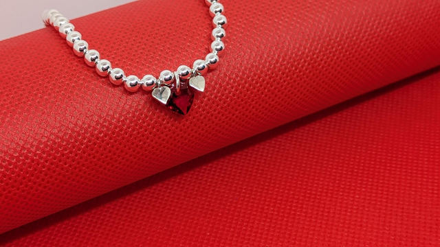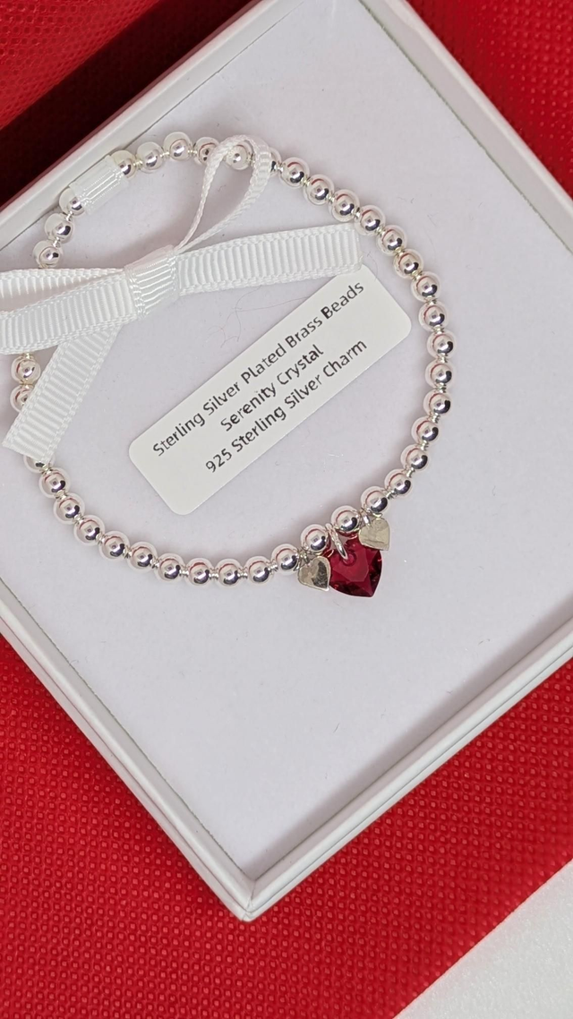 Beautiful Crystal Heart Charm Stretch Bracelet 'Scarlet Red' ❤️ With x2 Mini Sterling Silver Heart Tags