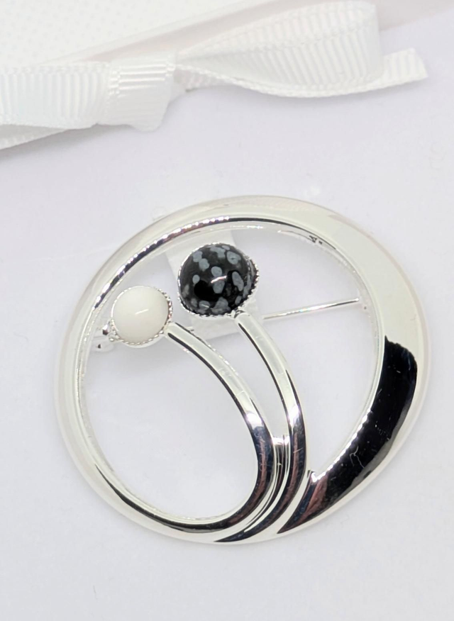 Grasses design with Snowflake Obsidian & White Agate Stones.