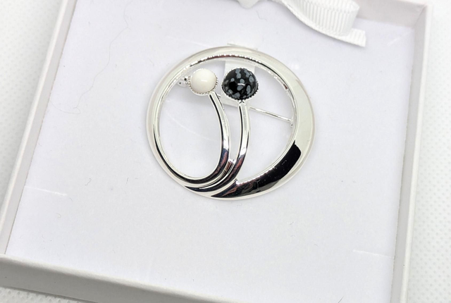 This brooch is of a very high quality with a stamped brass base and heavy silver plating to give a high quality finish.