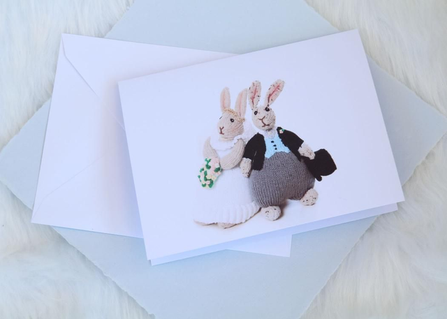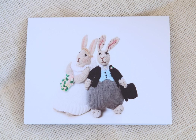 Gorgeous Wedding Greeting Card Featuring Knitted Bunnies.