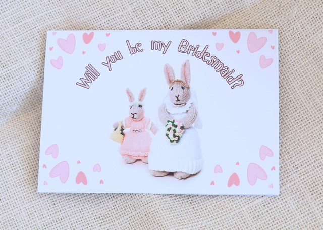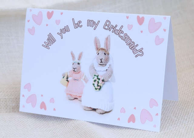 Make your bridesmaid proposal extra special with this charming greeting card featuring adorable knitted bunnies on the front. Soft, whimsical, and full of heart, it’s a sweet way to ask the question and show how much they mean to you. Perfect for adding a lovely handmade feel to an unforgettable “Will you be my bridesmaid?” moment. 🐰💐